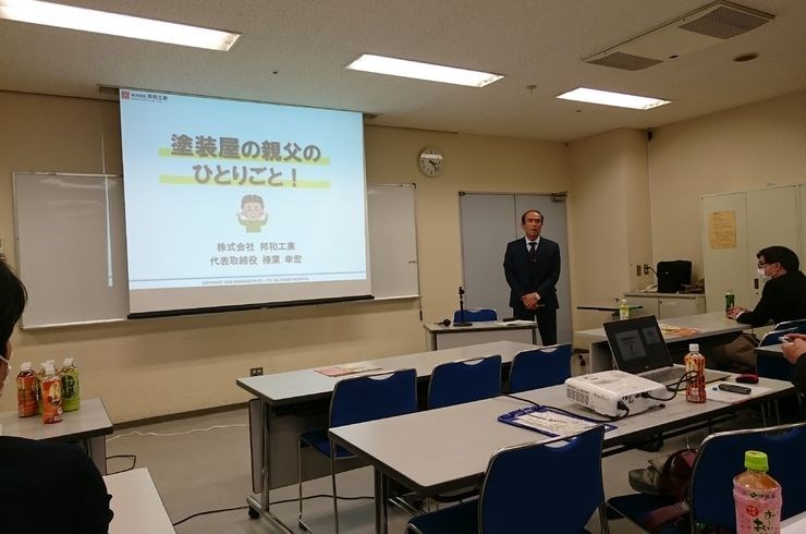 粉体塗装のパイオニア、筒井工業株式会社は日本パウダーコーティング協同組合に加盟しております。昨日は同組合主催の粉体塗装研究会に参加致しました。その中で、邦和工業㈱の榛葉社長様から『塗装屋の親父の独り言』と題してご講演がありました。誠実なお人柄がにじみ出る独特の語り口に加え、ブログには載せづらいような生々しいお話などもあり、1時間弱があっという間に過ぎてしまいました。これまで研究会は塗料や塗装機といった技術的なお話が多かったのですが、こうしたざっくばらんな講演もとても良いなと思いました。榛葉社長、貴重なお話ありがとうございました!