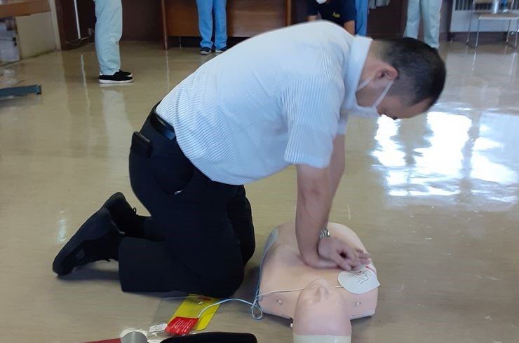 昨日は9月9日、救急(9・9)の日でした。半田消防署で救急法講習会が開催され、当社から社長と常務が参加させていただき、心臓マッサージやAEDの使い方を人形を使って何度も訓練しました。