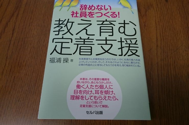 書籍は、福浦 操著『辞めない社員をつくる!教え育む定着支援』です。同書は社員教育や人材開発を担う方に向けて、『働く人たち個人に目を向け、耳を傾け、理解をする』ことを提案しています。そして著者の願いは社員がイキイキと働く企業に変化することです。
