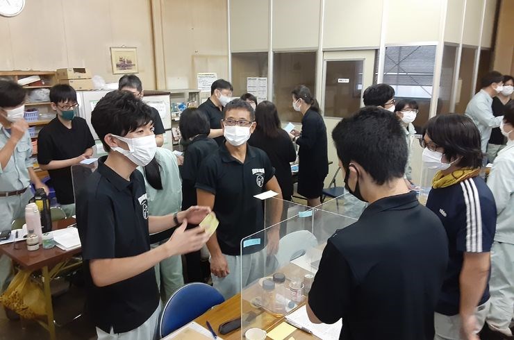 また、この地区は南海トラフ地震が発生した際に、大きな揺れや30cm程度の津波が予想されているので、避難訓練も実施しました。ここでもディスカッションを重視します。具体的には避難訓練の前に『自分の職場で地震が発生した際に何が起きそうか?』をグループディスカッションし、訓練後にも『訓練を通じて気づいたことはなにか?』をディスカッションしました。