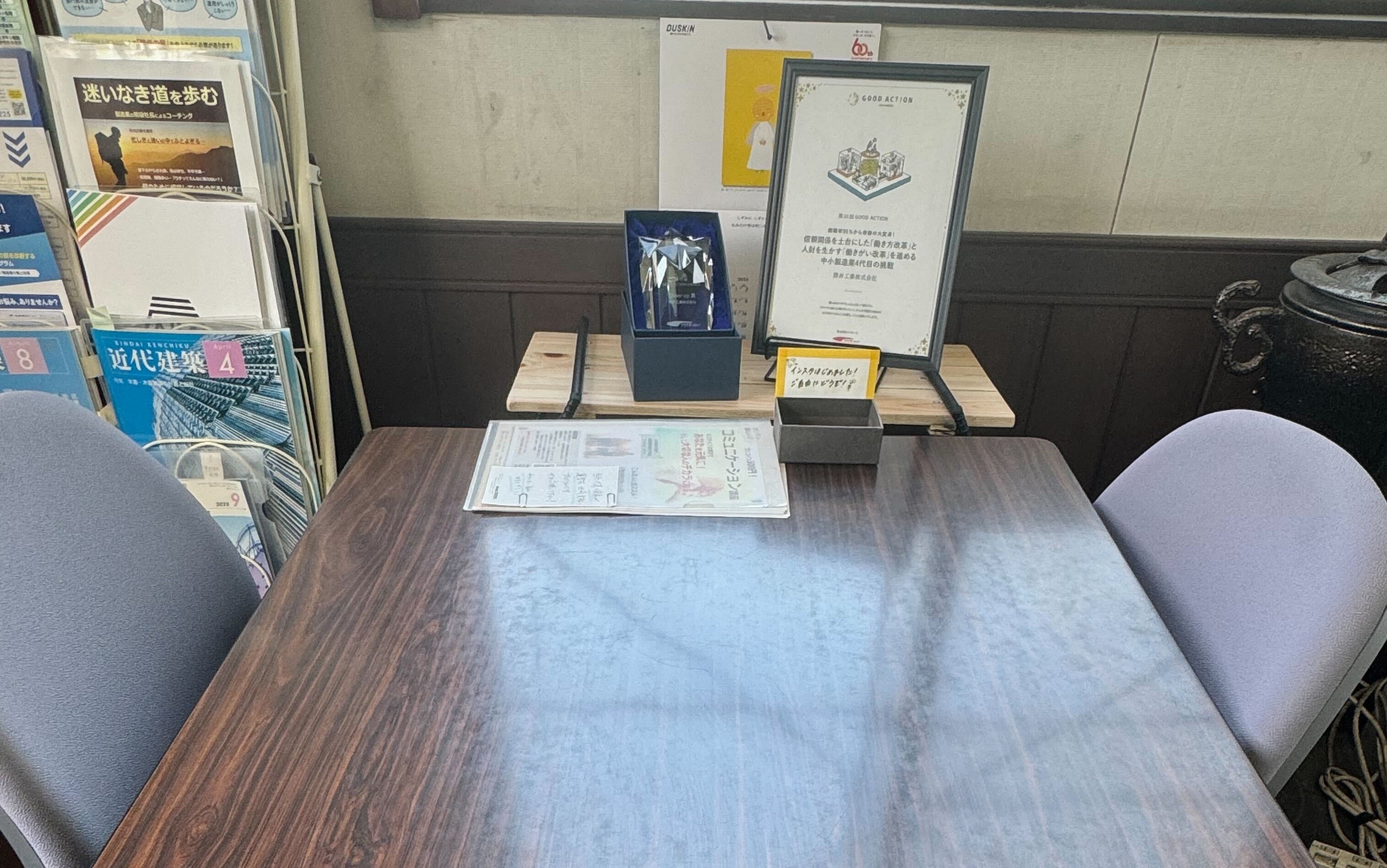 賞状と楯を事務所に配置することになり、