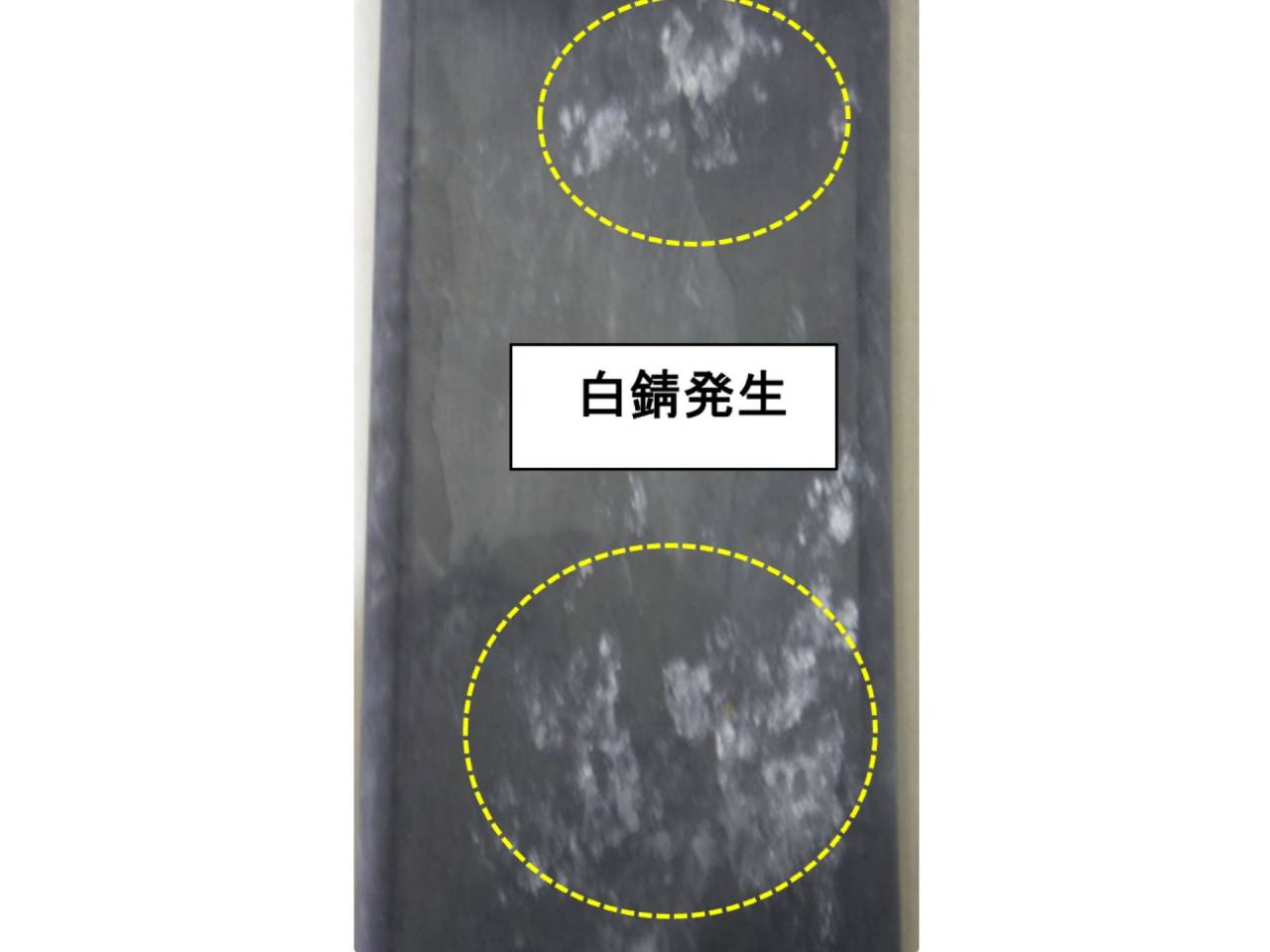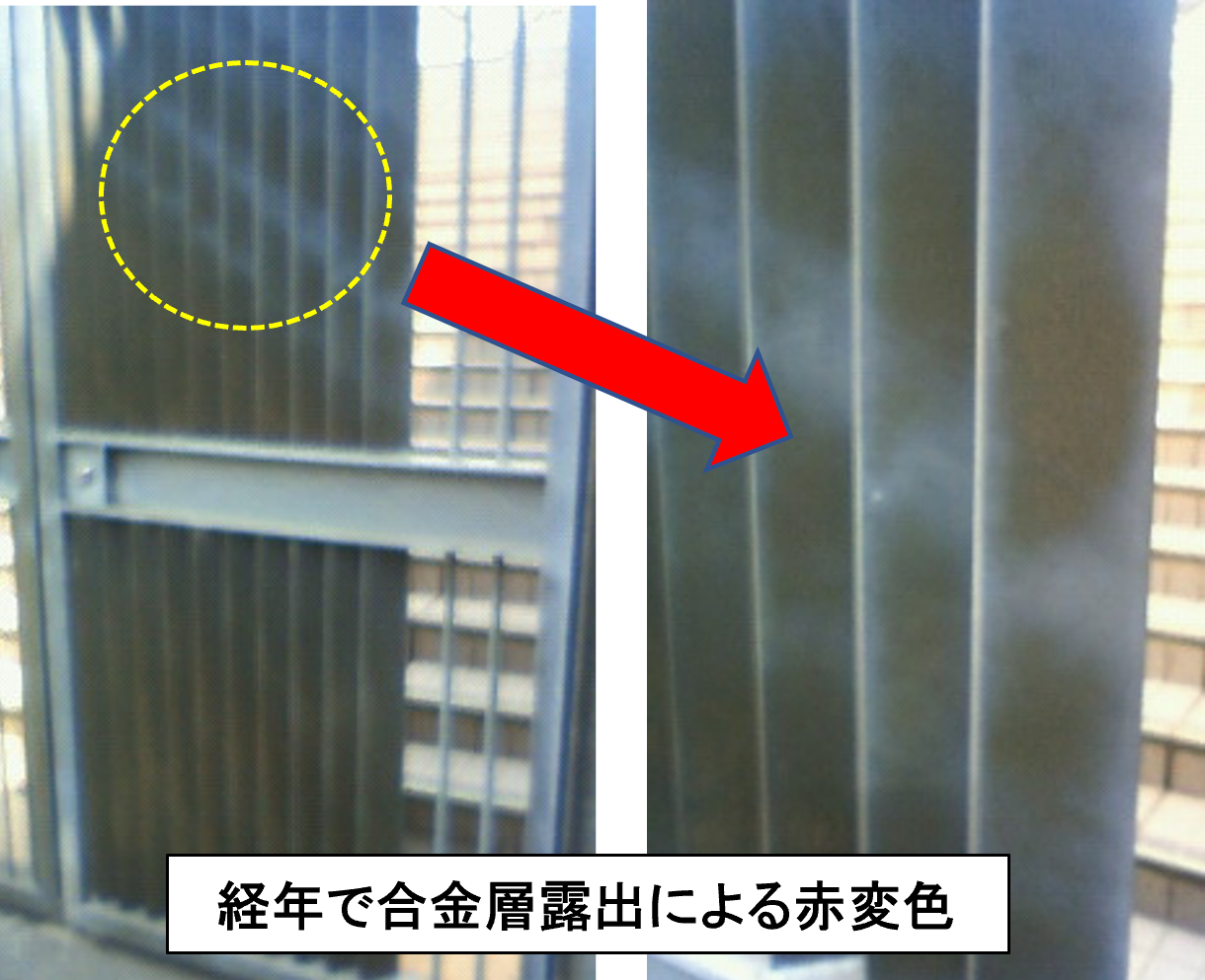 ④塩害地で使用すると白錆発生や赤変色が起こる。