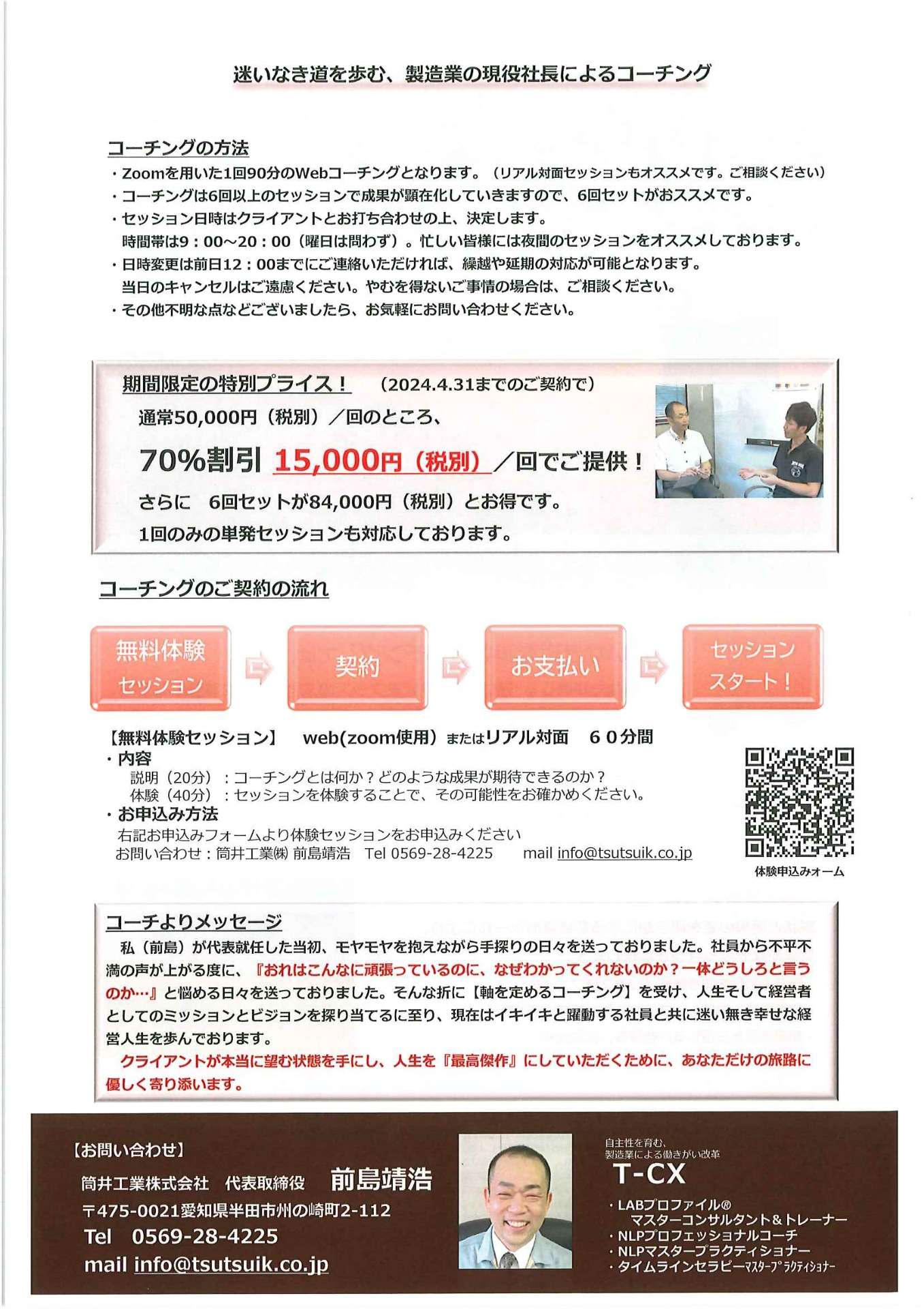 【迷いなき道を歩む 製造業の現役社長によるコーチング ご案内】